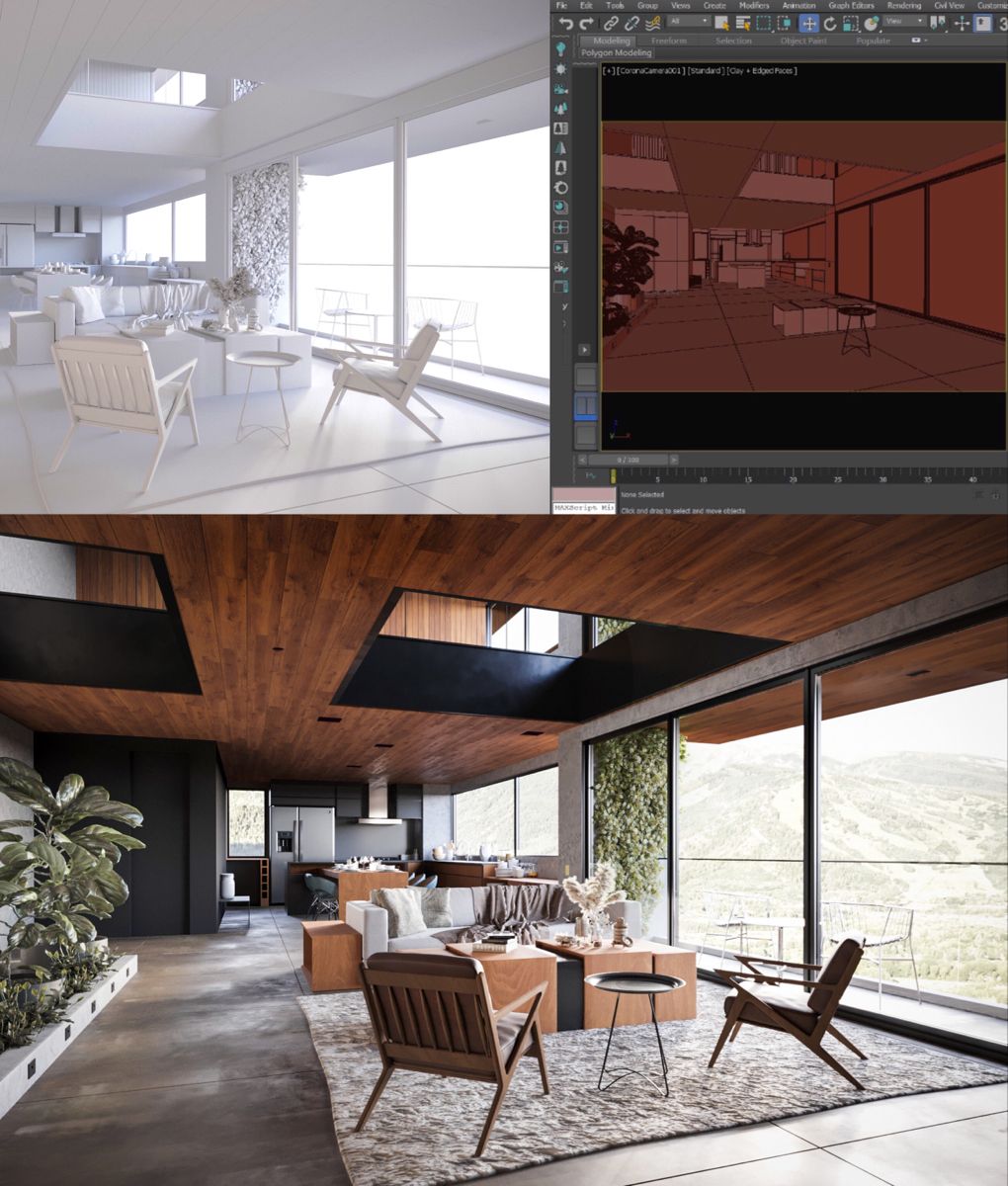 Learners begin by mastering 3D modeling in 3ds Max, focusing on walls, floors, ceilings, furniture, and decorative elements. They will explore modeling workflows that ensure accuracy, clean geometry, and efficient scene management. As they progress, they learn to integrate detail and scale into their designs, creating interiors that are both realistic and presentation-ready.