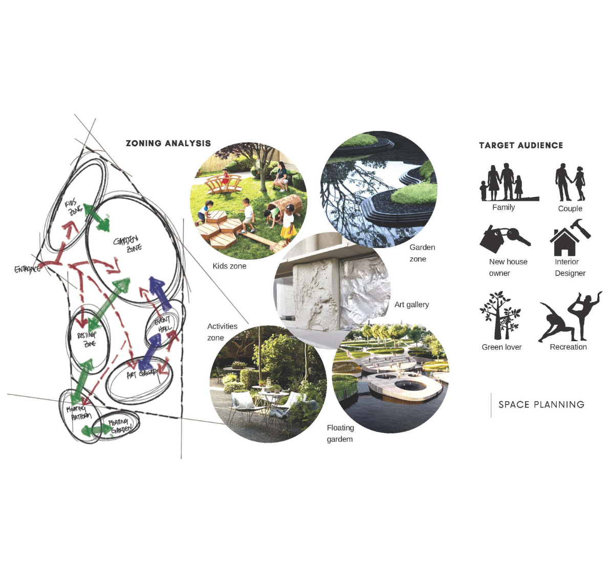 Sustainability Awareness: Emphasis on green design strategies, ecological planting, and multifunctional use of space.