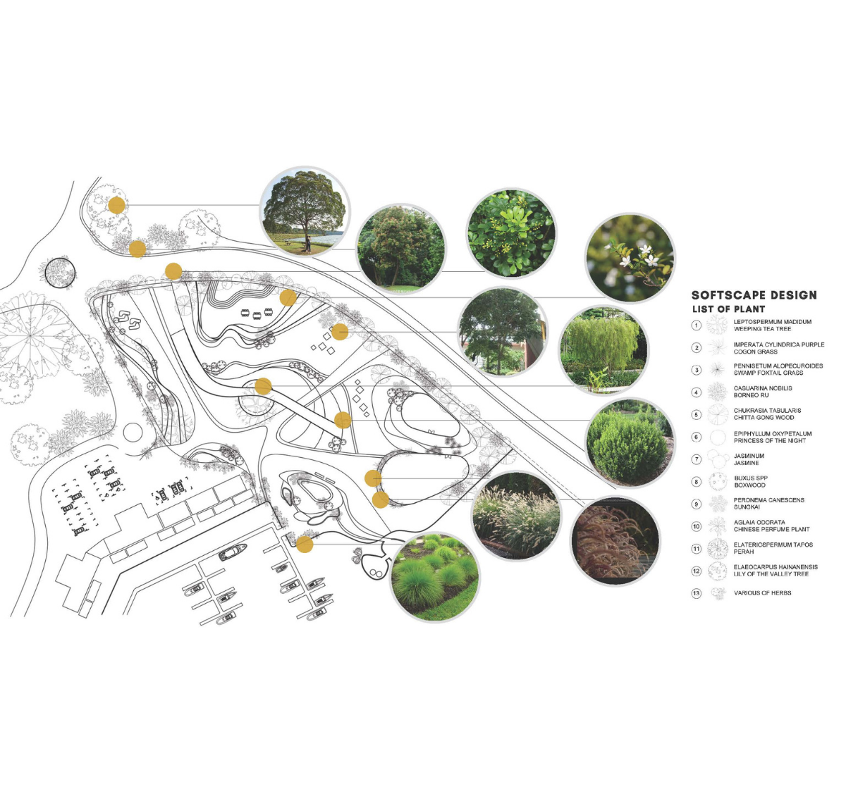 Softscape Planting: Carefully curated plant species create seasonal variety, ecological benefits, and sensory experiences for visitors.