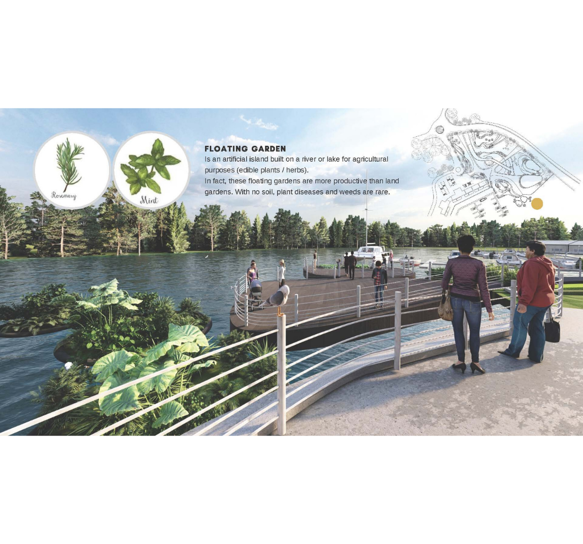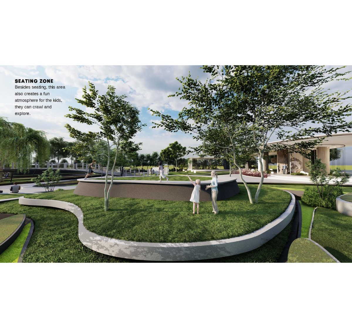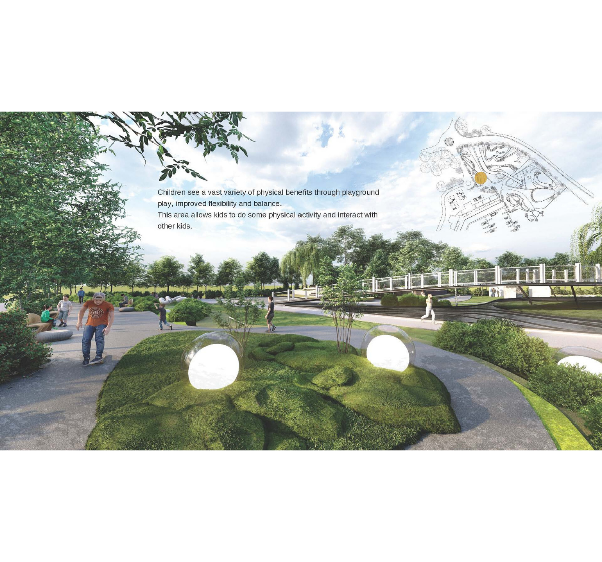 Connectivity: A hanging bridge and floating platforms encourage movement across different areas, making the site both experiential and interactive.