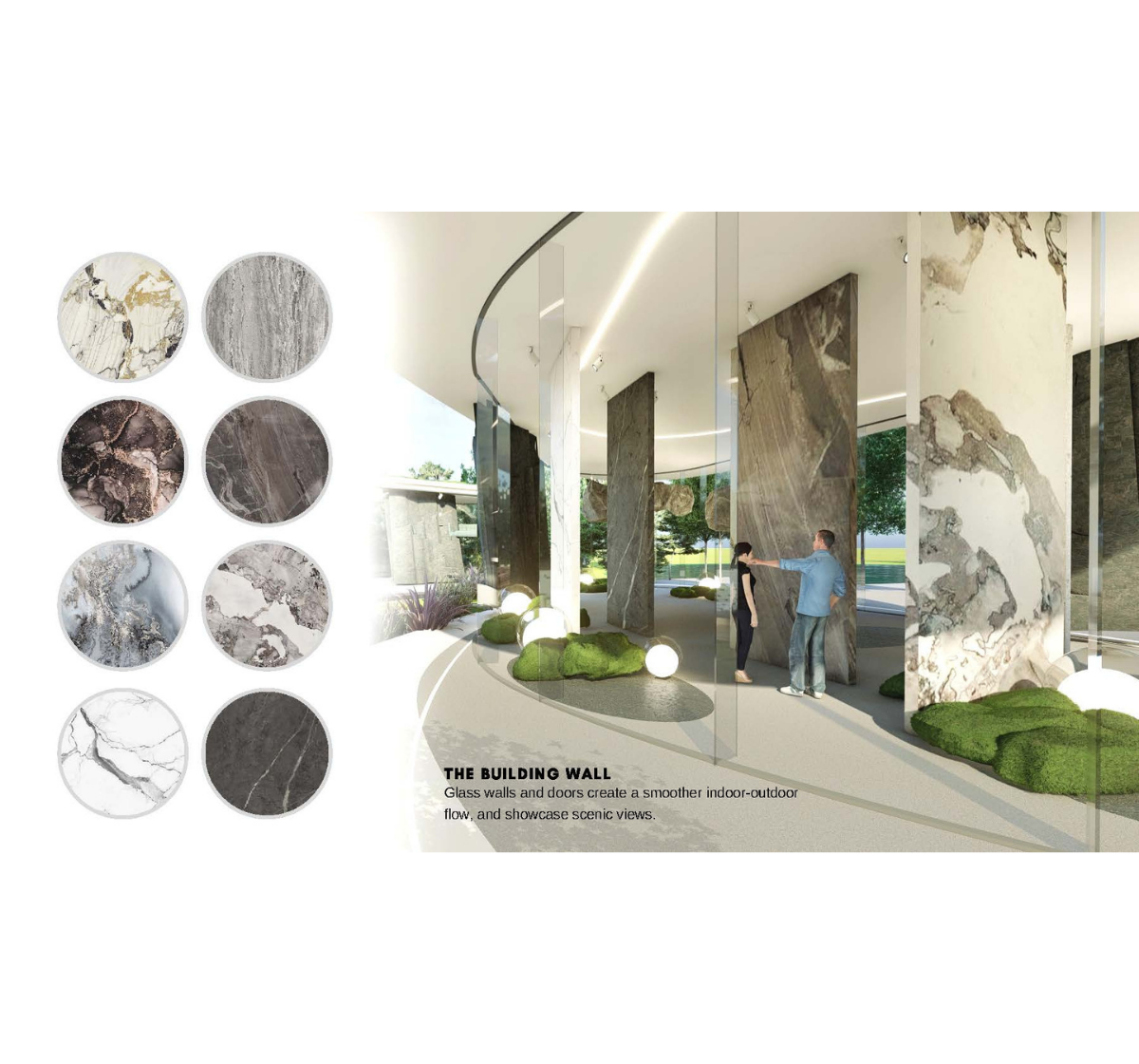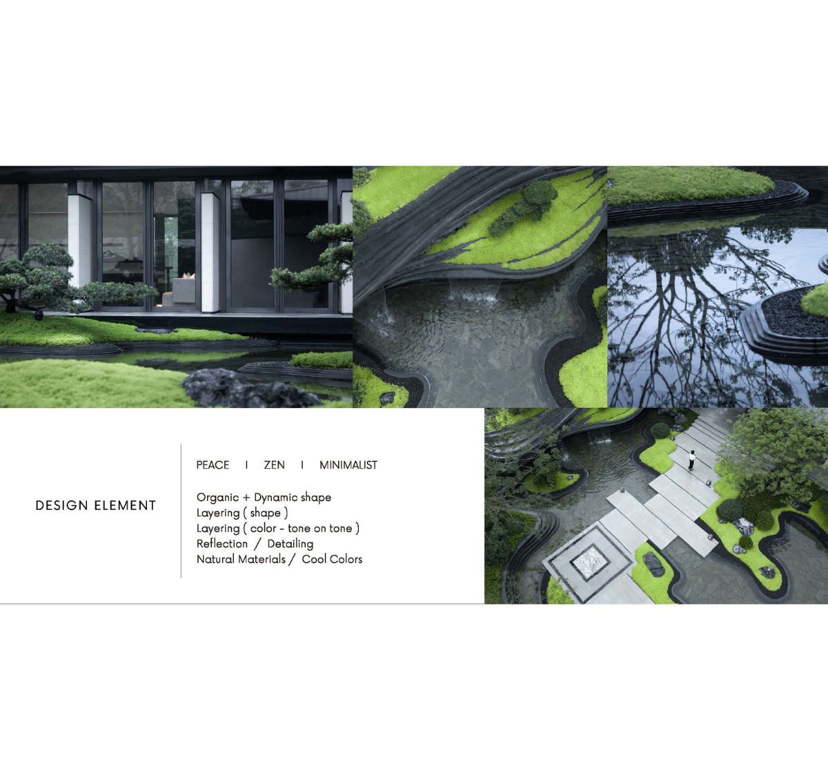 Water Features: Reflective ponds and flowing water elements enhance tranquility and visual richness.
