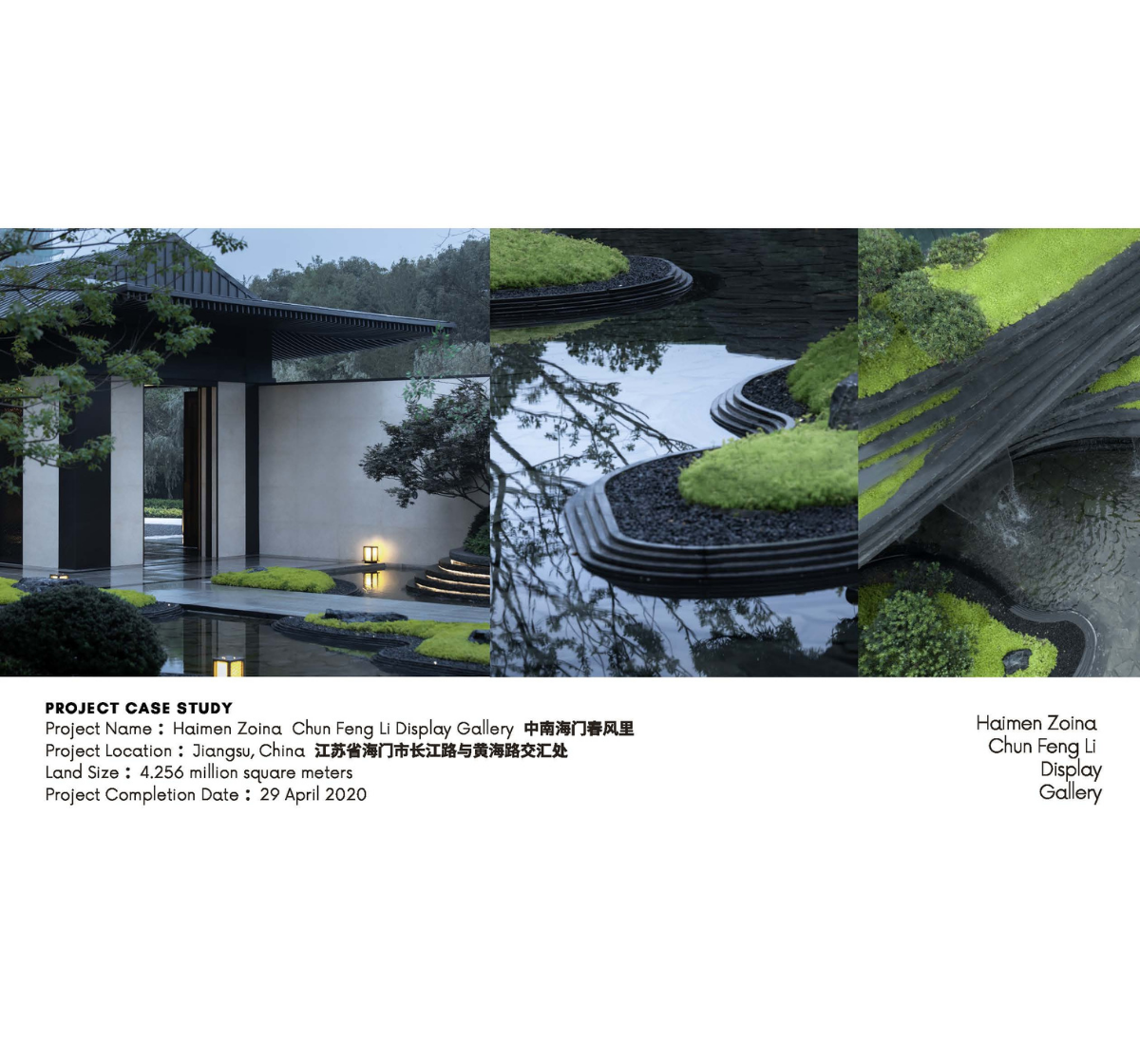 Zoning & Functions: The site is divided into multiple zones including outdoor galleries, children’s play areas, relaxation gardens, water features, and circulation paths.