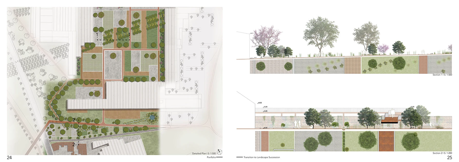 By reframing land as an interactive medium, the work emphasizes responsiveness and temporality—spaces are designed to shift with growth, weather, and occupation. The landscape becomes a social and ecological infrastructure, simultaneously supporting public life and environmental performance, and revealing the ground itself as a critical design interface between people, architecture, and natural systems.