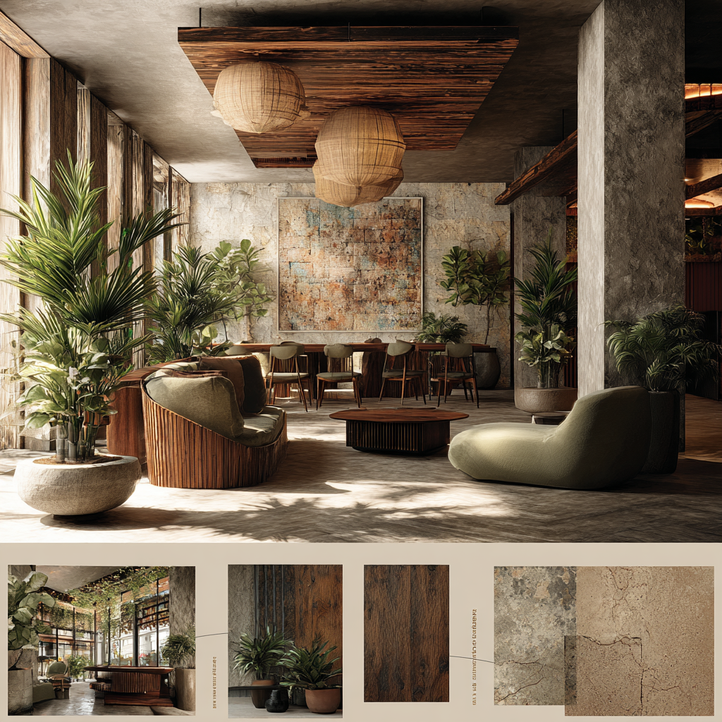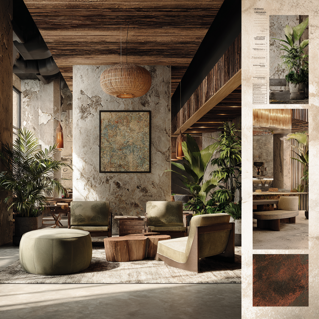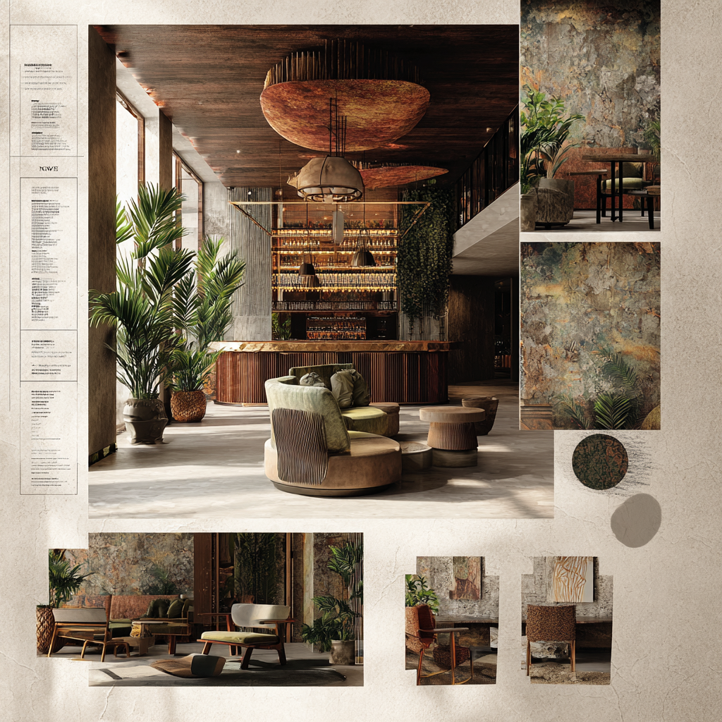 Whispers of Nature is a design project that brings the calming presence of the natural world into indoor spaces. The focus is on biophilic design—an approach that connects people with nature by using natural textures, living plants, and organic shapes.