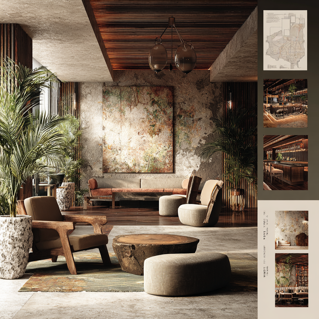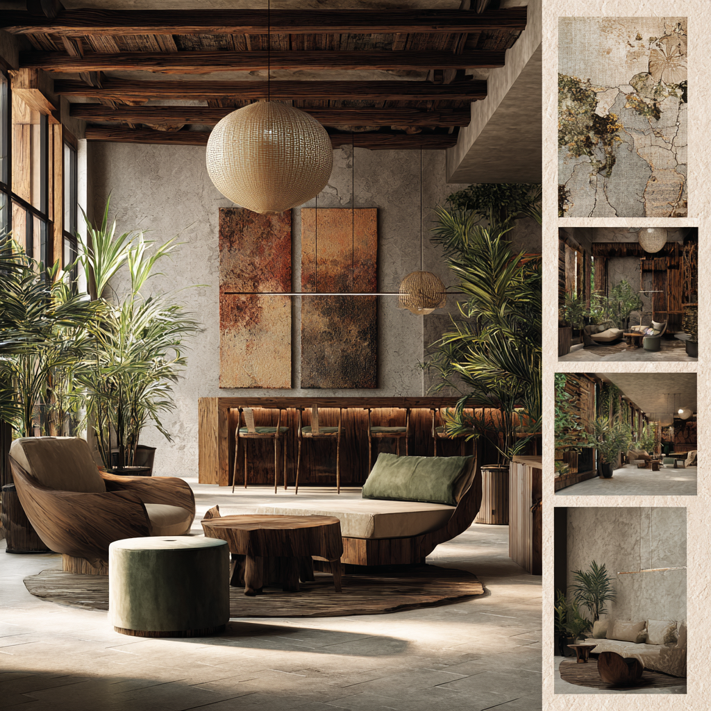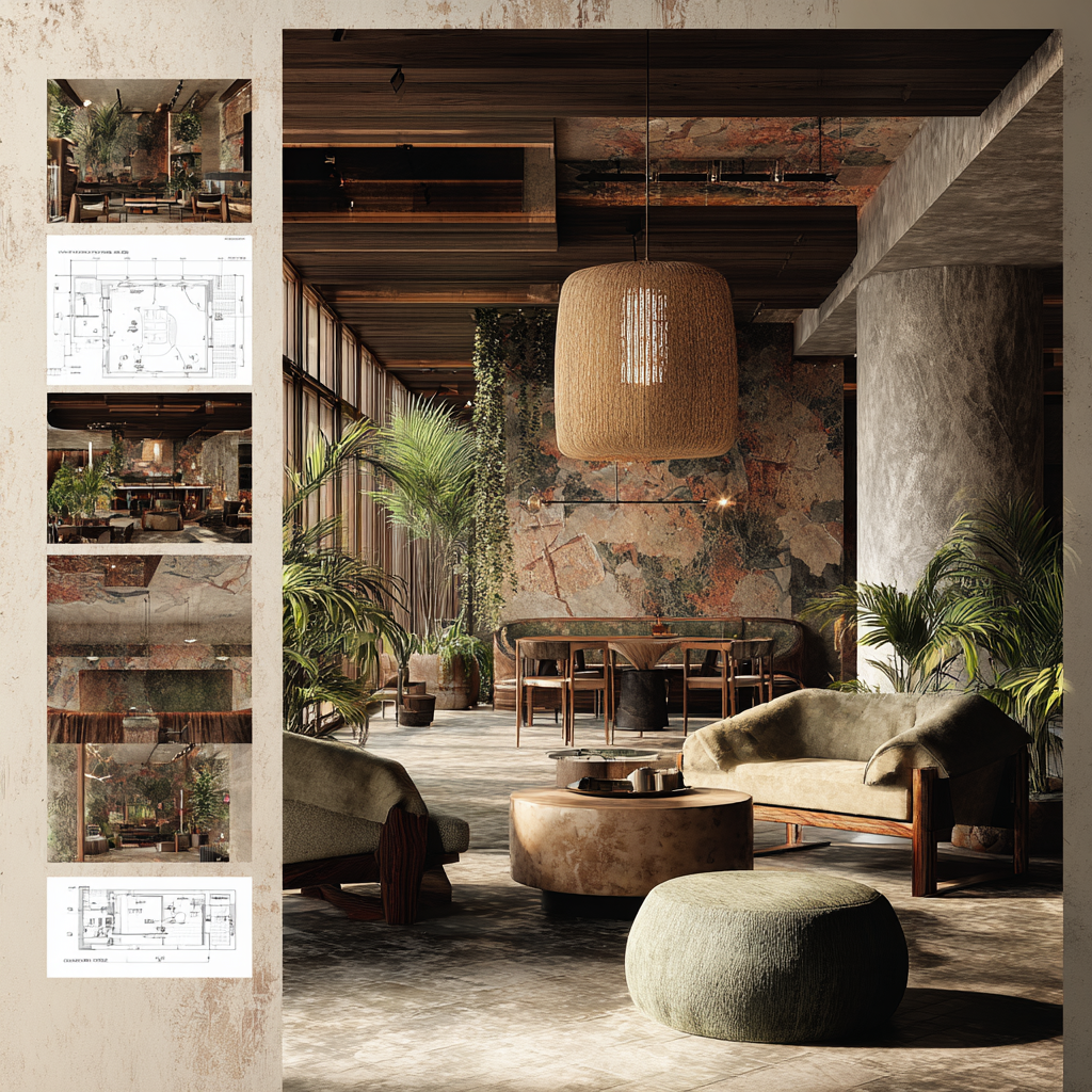 Whispers of Nature is a design project that brings the calming presence of the natural world into indoor spaces. The focus is on biophilic design—an approach that connects people with nature by using natural textures, living plants, and organic shapes.